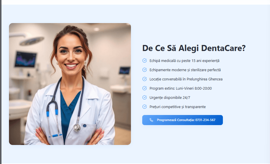 Ce vreti sa modificam la sectiune de ce DentaCare?(putem sa scoatem aceasta sectiune sau sa ramana modificata)