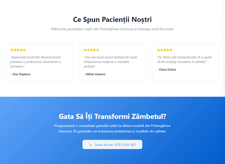 Ce vreti sa modificam la testimoniale + CTA? (putem sa scoatem aceasta sectiune, sau sa ramana modificata)